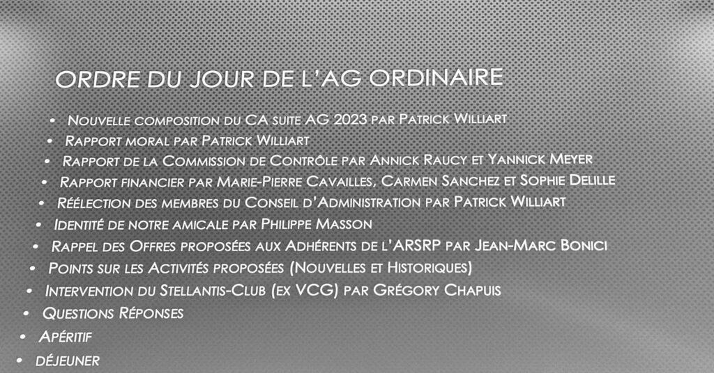 ORDRE DU JOUR DE L’AG ORDINAIRE 21/11/2024