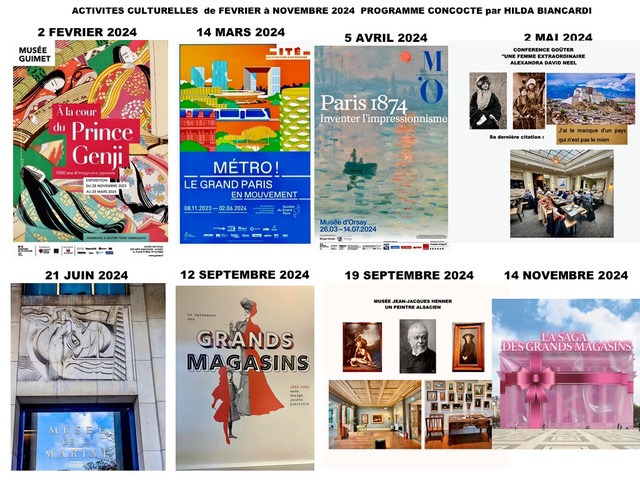 ACTIVITES CULTURELLES FEVRIER à NOVEMBRE 2024