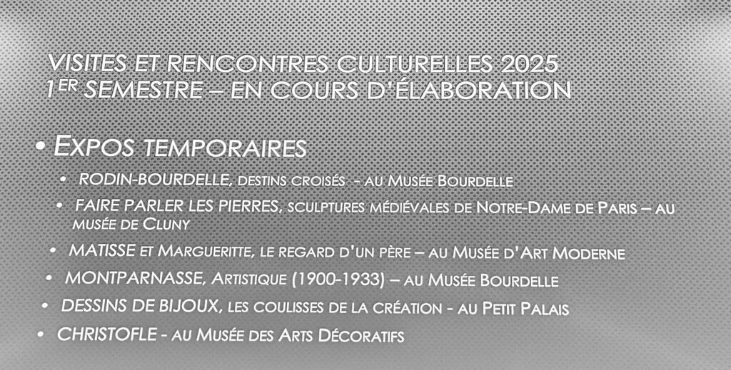 VISITES ET RECONTRES CULTURELLES PREVISIONS 2025