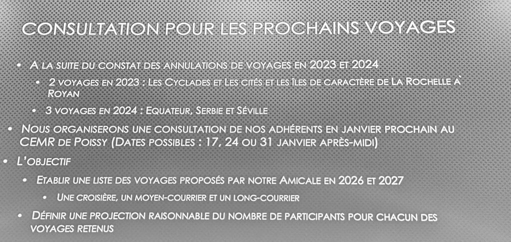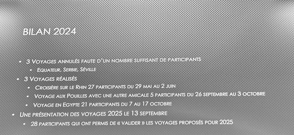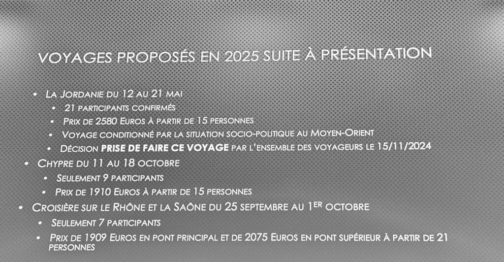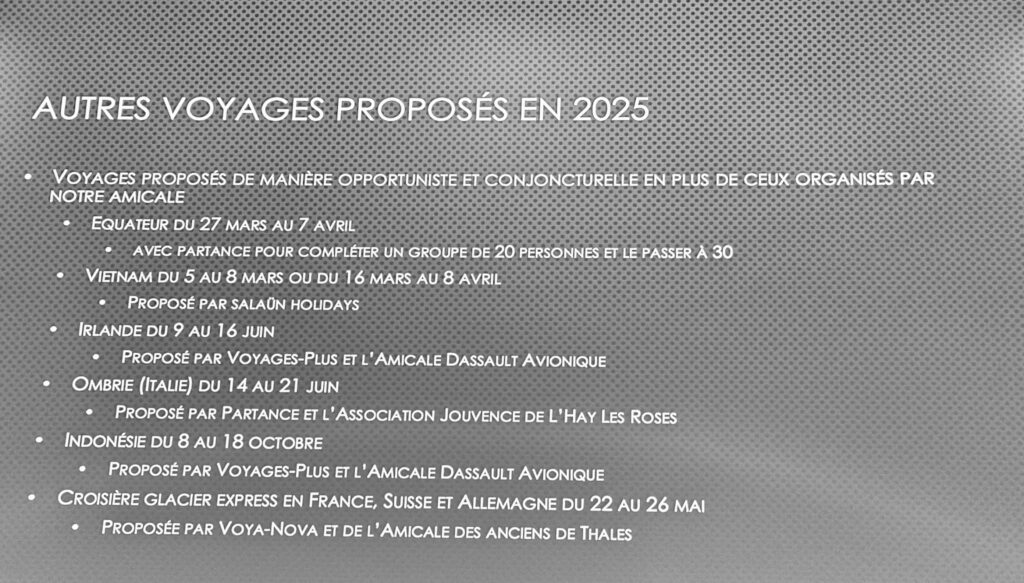 VOYAGES PROPOSES EN 2025 EN COMPLEMENT D’AUTRES AMICALES