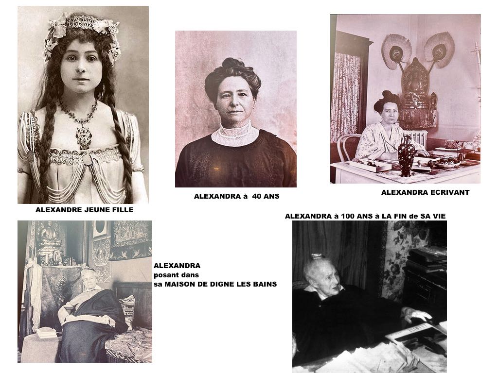 ALEXANDRA DAVID NEEL 1868/1969 LE MUR DES FEDERESALEXANDRA S’ABSORBE DANS LA LECTURE de JULES VERNE1868-1895 – UNE JEUNESSE EN BELGIQUEALEXANDRA S’INTERESSE AUX IDEES ANARCHISTES ET FEMINISTESTEXTE ECRIT par ALEXANDRA DAVID NEELà LONDRES ELLE FAIT CONNAISSANCE DES MEMBRES DE LA SOCIETE THEOSOPHIQUE1895-1902 – LA CANTATRICECOLLEGE de FRANCE où ELLE APPREND LE TIBETAINMUSEE GUIMET011 1904-1911 – LA FEMME MARIÉE1911-1925 – LE PÉRIPLE INDO-TIBÉTAINBOUDDHAHIMALAYAVOYAGE D’ALEXANDRA DE 1911 à 1925 RENCONTRE AVEC LE 13E DALAÏ-LAMA À KALIMPONG (1912)ALEXANDRE EN VOYAGE AVEC UN PETIT TIBETAIN QU’ELLE ADOPTERAEN COSTUME TIBETAIN 1931ALEXANDRA DAVID-NÉEL ET LE LAMA APHUR YONGDEN AU TIBET.TIBET CHIGADSTUPPAVOYAGE D’ALEXANDRA 1937 à 1946GORALE TEMPLE d’EUROVILLE DEUX DES LIVRES d’ALEXANDRA DAVID NEELMARIE-MADELEINE PEYRONNET SECRETAIRE d’ALEXANDRASA DERNIERE DEMEURE à DIGNE LES BAINSPORTRAITS d’ ALEXANDRA à DIVERS AGES de SA VIESA DERNIERE CITATION