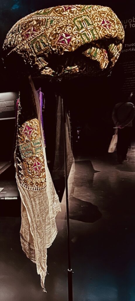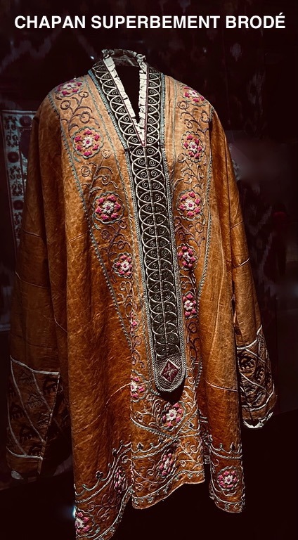 présentées pour la première fois en dehors des musées nationaux : manteaux brodés d’or de la cour de l’émir,