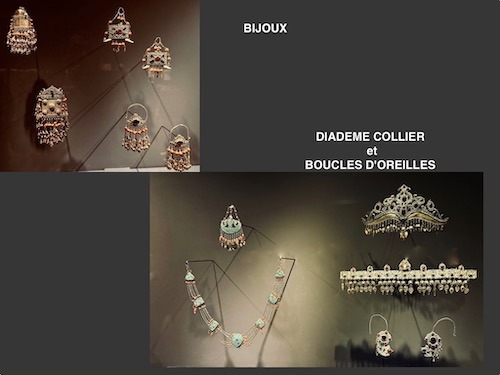 harnachements de chevaux en argent sertis de turquoises, tapis, ikats de soie, bijoux et costumes de la culture