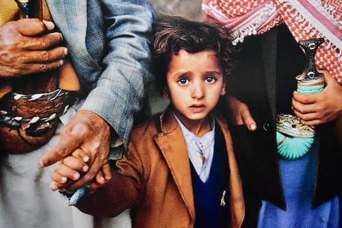« Le monde de Steve Mc Curry » – Exposition au Musée Maillol – Ce fut une plongée fascinante dans la vision du monde du photographe américain de 72 ans qui, en plus de 150 photos sélectionnées et imprimées en grand format, a partagé son univers d’émotions et d’expériences issues de ses voyages et de ses 40 années de carrière. D’emblée nous sommes saisis par les regards des sujets qui semblent nous parler, tel en Afghanistan : le mineur épuisé couvert de charbon, dont le premier geste est de fumer une cigarette en défiant ses poumons endommagés, ou le jeune écolier aux yeux écarquillés tout étonné d’avoir bien compris ou encore la jeune fille aux yeux verts à l’affiche de l’exposition … à Kaboul : les 7 gamins tassés dans le coffre d’une vieille Chevrolet ou encore au Yemen le regard apeuré du petit garçon entouré de ses grands-parents qui enfoui sa main dans celle protectrice de son aïeule.