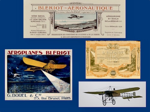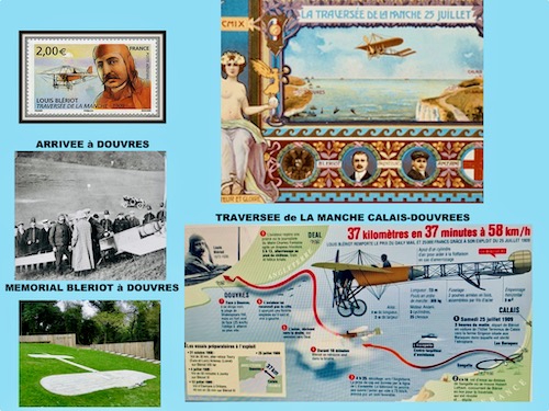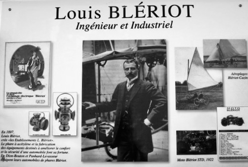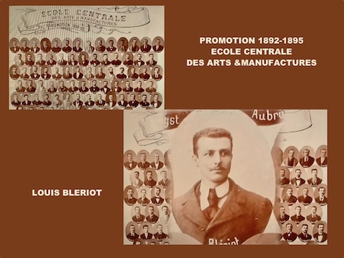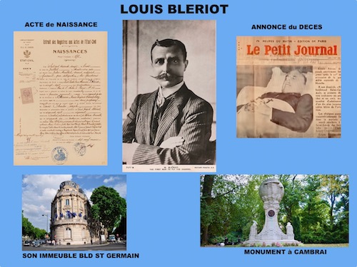 « Louis BLERIOT » – Commémoration du 150ème anniversaire de sa naissance – Blériot est né le 1er juillet 1872 à Cambrai (mort le 1er aout 1936 à Paris et enterré au cimetière des Gonards à Versailles). L’année 2022 est l’occasion de revenir sur une figure singulière de l’histoire de l’aéronautique. Après une formation d’ingénieur à l’Ecole Centrale Paris (promotion 1895), le jeune homme séduisant et audacieux parie sur le succès de l’industrie automobile. Constructeur de lanternes d’automobiles (les phares à acétylène), il gagne très bien sa vie. Inventeur passionné, il dépose des centaines de brevets d’inventions (dont celui du « manche à balai » (ou « cloche Blériot » en 1907), construit des motocyclettes et des chars à voile… Mais c’est l’aviation naissante qui le passionne en découvrant l’Eole de Clément Ader.