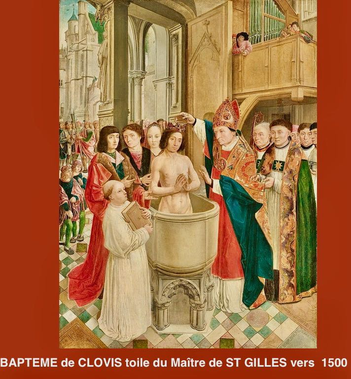 En s’inspirant du sacrement du baptême de Clovis en 496 à Reims, qui symbolisait la conversion du